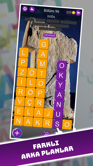 Eşsiz bir oyun deneyimi sizi bekliyor. Birbirinden güzel arkaplanlar ile bir yandan kelimeleri bulup bir yandan da farklı Türkiye’nin farklı şehirlerinin bulunduğu temaları deneyimleyeceksiniz. Deneyin ve siz de görün: Bugüne kadar oynadığınız en keyifli ve en geliştirici kelime oyunu!