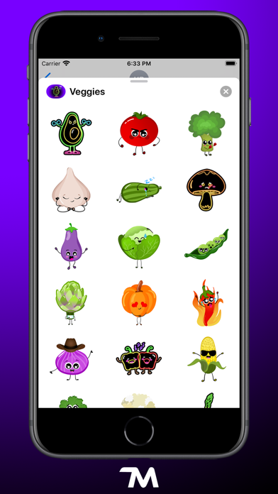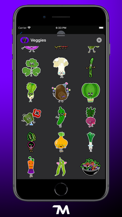 Express yourself and have fun sending stickers to your friends and family, this sticker pack includes 30 emojis of your favorite vegetables. Use these stickers on iMessage, scale and rotate, you can even place them on photos you send and receive.