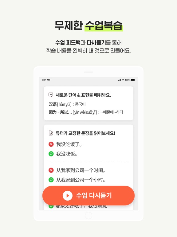 (3) 수업 후 : 피드백 노트 확인하기. 녹음된 수업내용 들으면서 무제한 복습하세요.