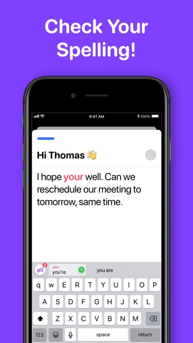 Choose between the Grammatica App or the dedicated Keyboard and instantly write mistake-free, everywhere. Whether you want to impress your colleagues with your professional writing skills or create the perfect typo-free pick-up line in a dating app: we've got you covered!