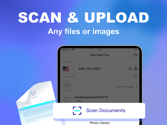 - Fax files, docs, pdf, photos and more from your Phone or Cloud;