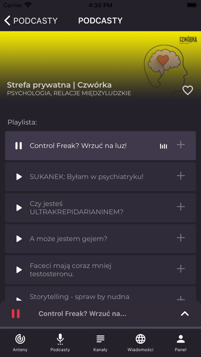 Dzięki aplikacji masz dostęp do stale aktualizowanej, bogatej biblioteki podcastów oraz do ponad 40 cyfrowych kanałów tematycznych z unikalnymi treściami. Przyjemności słuchania dostarczą Ci takie kanały jak Ballady, Pink Floyd, Szanty, Niezły Jazz, Wieczór Odkrywców czy... Las.