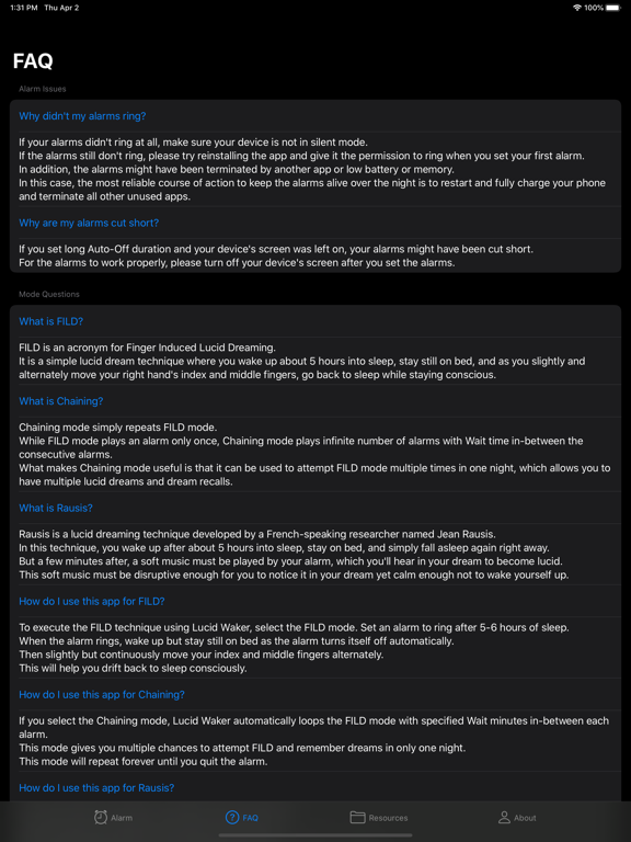These features help its users utilize FILD, CANWILD, Rausis, and other similar lucid dreaming techniques that apply a use of alerts.