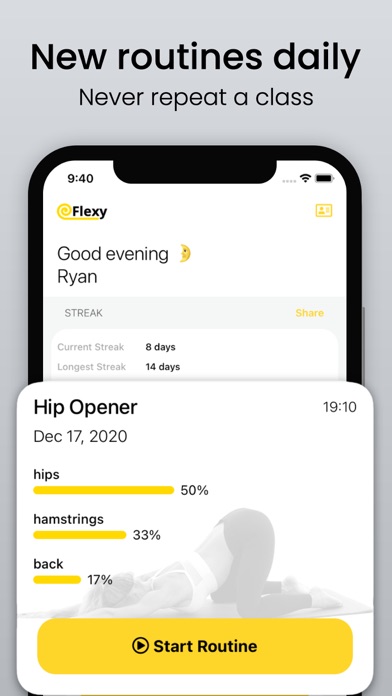 Flexy acts as your flexibility instructor, guiding you through easy-to-follow daily stretching routines to improve your range of motion and help you be more flexible.