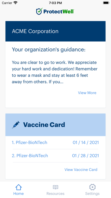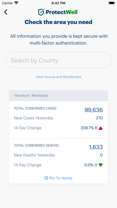 ProtectWell™ enables you to store images of your CDC COVID-19 vaccination record card and save your vaccine dose information. You can also access COVID-19 case data and find information on telehealth and other COVID-19 resources.