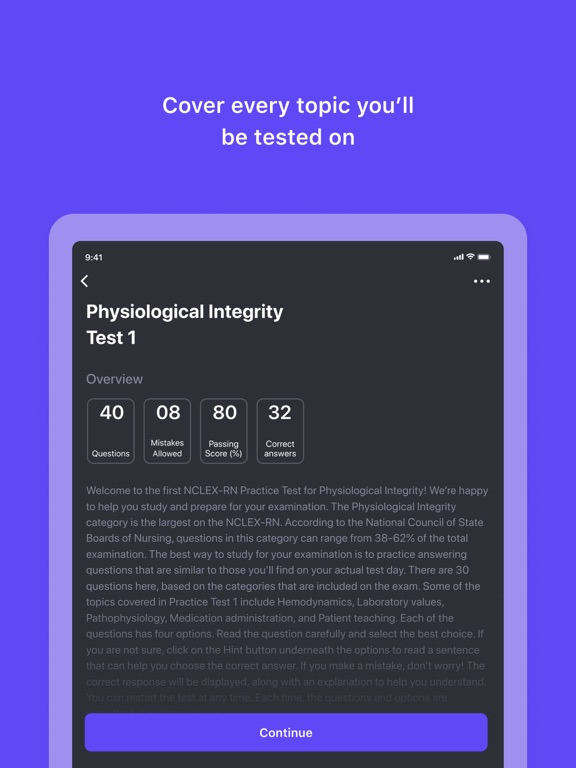 • Powerful Passing Probability analytics: see how you'd score on the official NCLEX exam if you took it today.