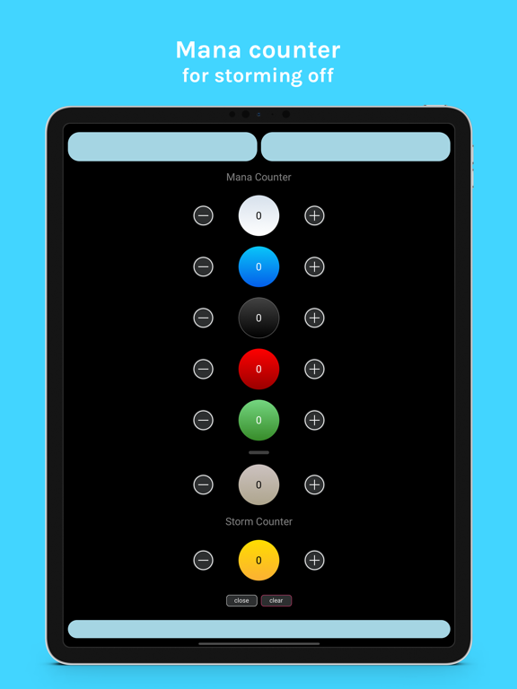 - Mana and storm counters to help players who are storming off keep track of floating mana and spells so far cast.