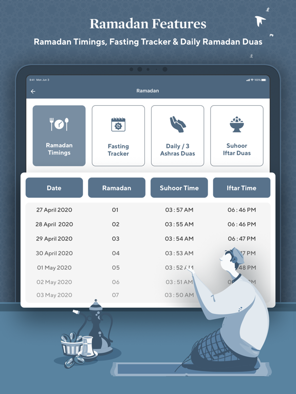 • View accurate Ramadan Suhoor & Iftar timings. Use Fasting Tracker to keep a track of your missed & observed fasts. Print hi-resolution Ramadan timetable.