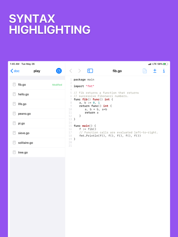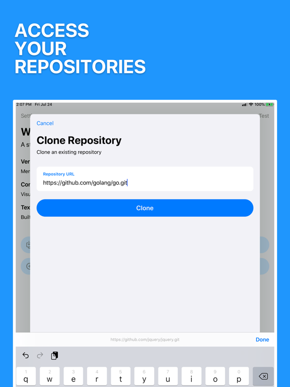 Built-in syntax highlighting for more than 75 languages and custom keyboard keys makes editing code a breeze. Make quick updates on the go and push commits in seconds.