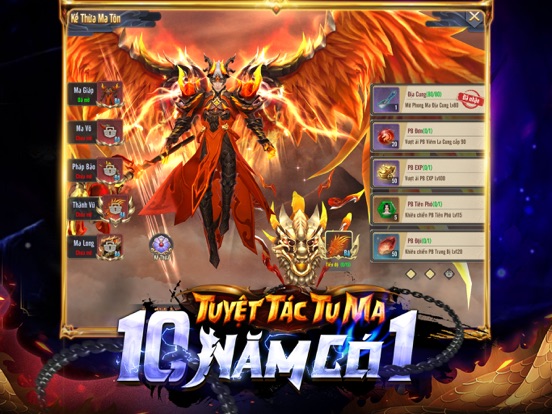 Ma Tôn là bộ trang bị tăng thêm nhiều thuộc tính giúp người chơi tăng thêm rất nhiều lực chiến. Điểm thú vị của Ma Tôn là chuỗi nhiệm vụ trải dài xuyên suốt hành trình tu ma, là động lực để dân cày phấn đấu tu luyện đạt được.