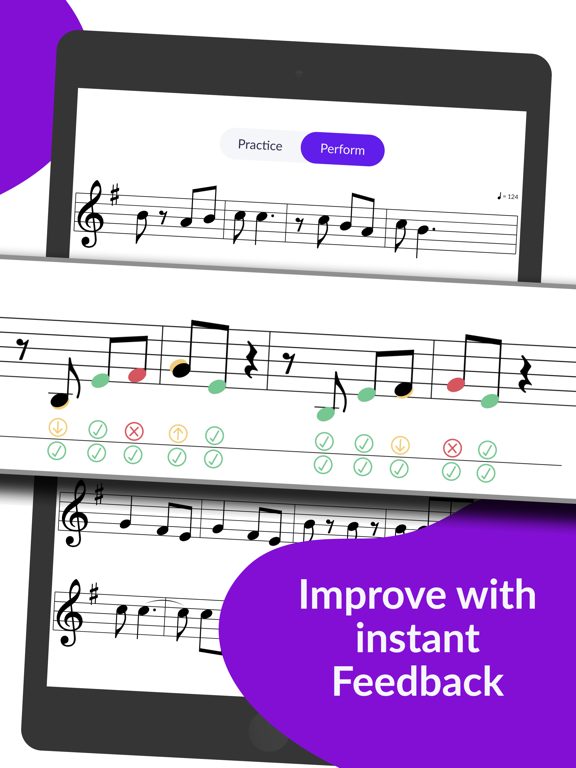 - Interactive live-feedback on your performance: Play on your instrument and practice pitch (intonation) & rhythm