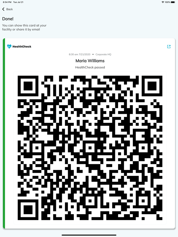 HealthCheck is intended only as an information gathering tool to help users and employers manage the safety of their locations, office, buildings or events by screening for common symptoms that may create an unsafe workplace or environment. HealthCheck is not designed or intended to replace the user's healthcare provider, and does not provide any therapeutic services to users. Users should, in all cases, work with their healthcare provider for care and treatment of any condition. If you are experiencing a medical emergency, you should dial the emergency services number, such as 9-1-1 in the US, immediately."