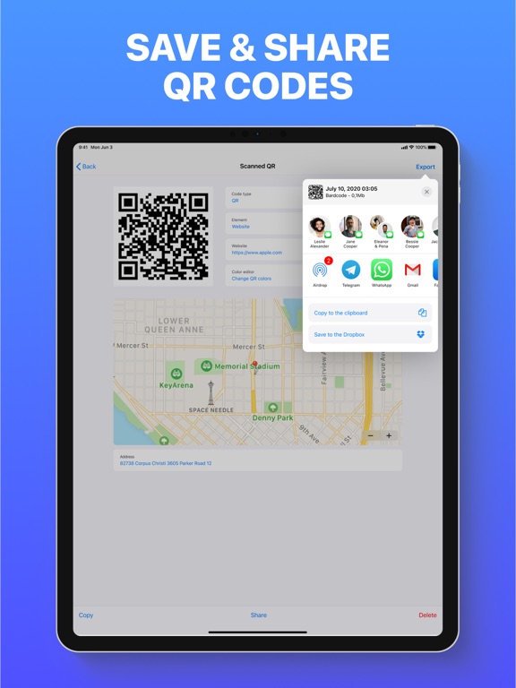 - Save, export and share all barcodes