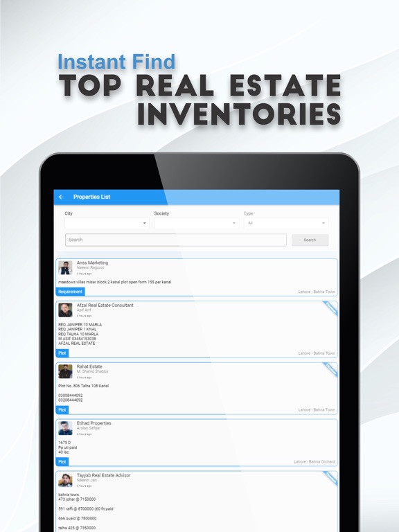 The Bahria Plus app provides you the platform to buy, sell and rent properties in all projects of Bahria Town Lahore, Karachi and Rawalpindi; allowing you to find plots, houses, flats and apartments.