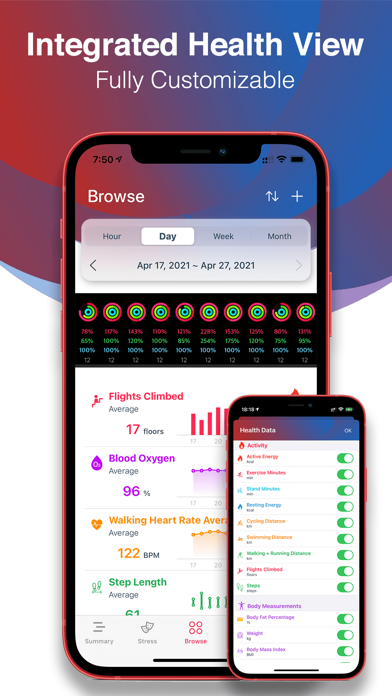 2. quick access to the day's heart rate, stress status through widgets and Apple Watch.