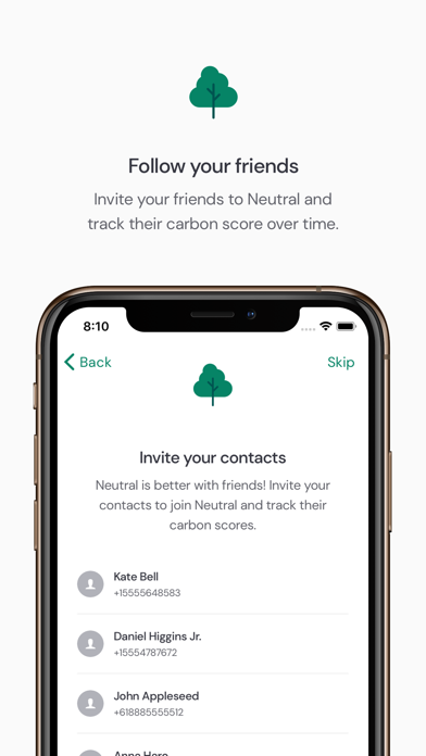 - Follow your friends: Invite your friends to Neutral and track their carbon score over time.