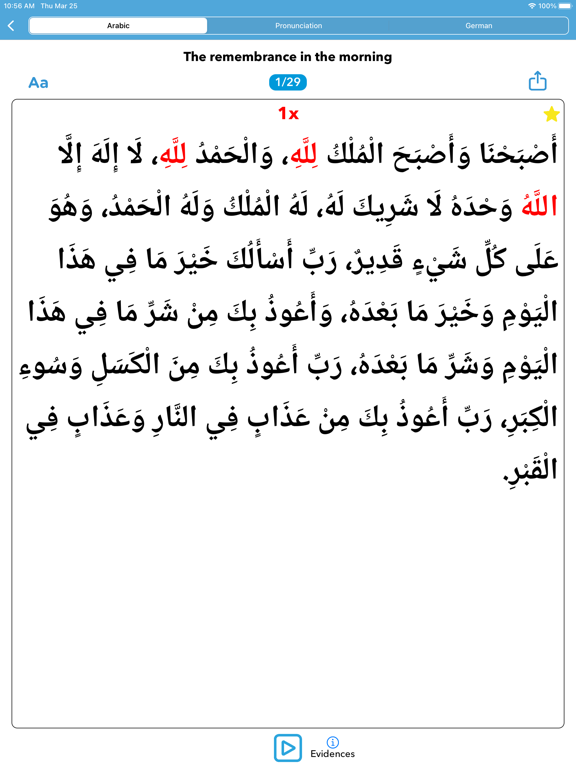 This app is also an addition to our german book: "Das Gedenken des Morgens und des Abends".