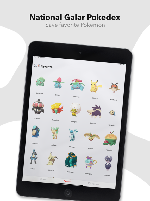 National Galar Pokedex is a great utility for the Pokemon Sword and Shield Nintendo Switch Games. All available Pokemon are available with: - Description - National & Galar Number - Type - Height & Weight - Base Stats - Hatch Cycles - Exp Group - Egg groups - Egg Moves - Abilities - Level Up Moves