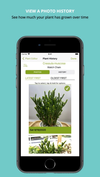 You can keep a photographic history of each plant, using the camera in your device or a photo taken elsewhere.
