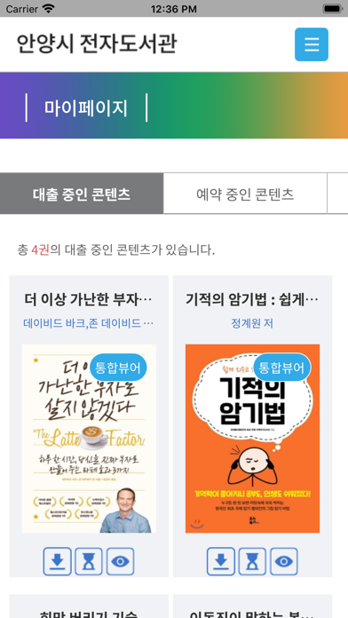 1). 안양시립전자도서관((주)이씨오)에서 운영중인 전자책(eBook)을 읽기 위한 어플리케이션입니다.