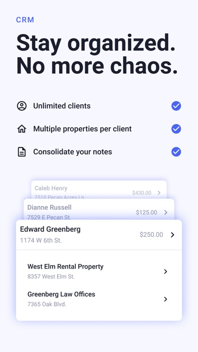 • Client management (CRM): Add and manage client details such as contact info, multiple properties, services, special instructions, outstanding balances, and more.
