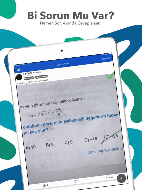Artık çözemediğin soru kalmayacak. Bi Sorum Var ile aklına takılan, çözemediğin soruları sor, cevaplansın.