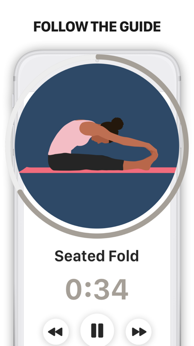 Easily follow along with custom illustrations and a timer to let you know when it’s time to switch sides or go to the next stretch.