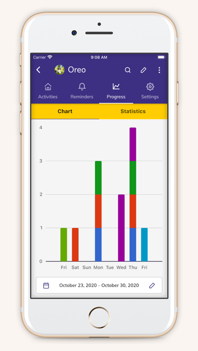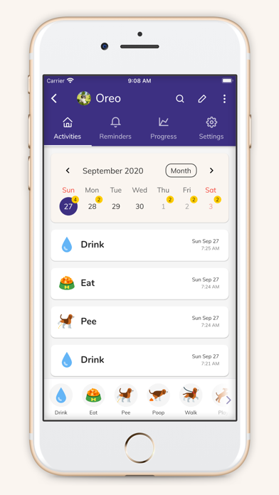 Create reminders and alerts for daily, weekly and one time puppy training events.