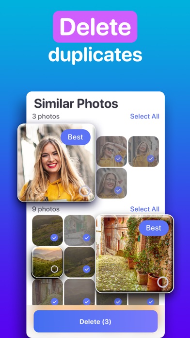 • Delete duplicates and similar images. Don't get bogged down with repeat photos and videos when you really only want to keep the best ones. Our app helps you delete unnecessary duplicate photos and videos.