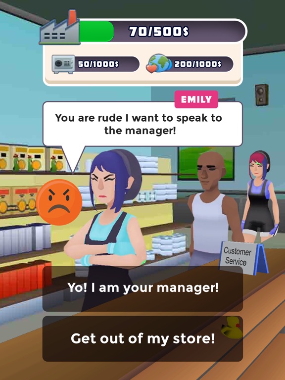 No need to be polite in this game. Are they being annoying and you want to flip them off? Want to tell them how you truly feel? Now is your chance in this store management simulator. There is no wrong answer here. Just let out your emotions and play!