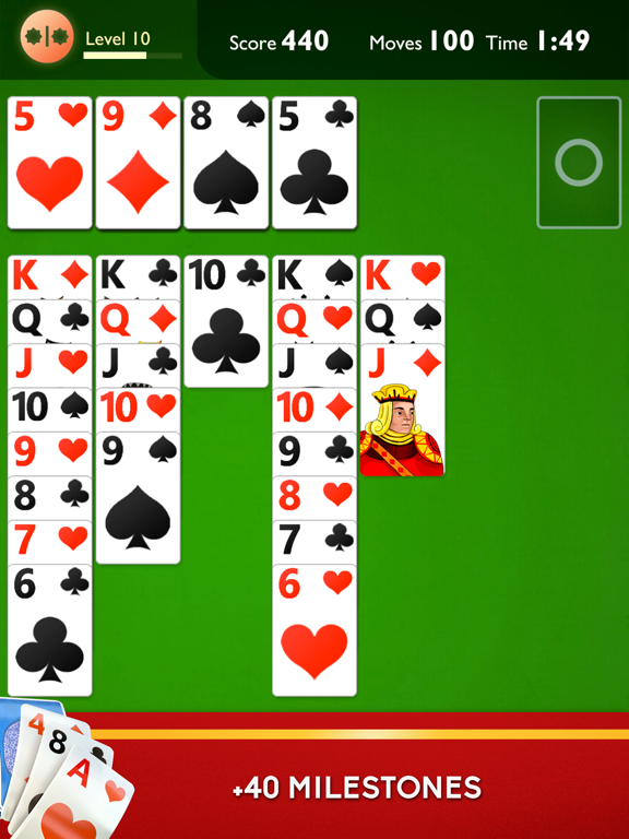 There are three game styles to enjoy in Solitaire Plus: Standard, Vegas, and Vegas Cumulative. Obviously, you can decide on your favorite style or improve your performance in every style, by tracking your statistics. There are more than 400 levels to unlock in Solitaire Plus. Can you beat them all?