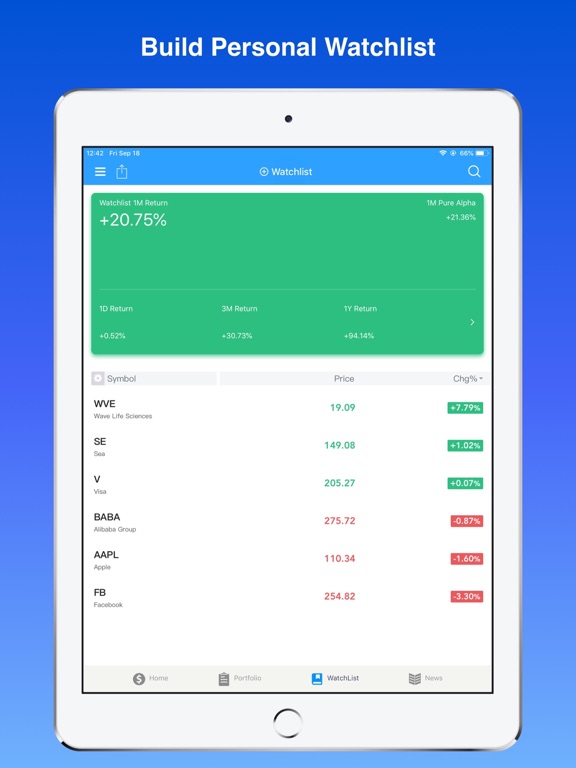 PORTFOLIO: You can create unlimited stocks and ETF portfolios as you want, it is a great stock market game tool for day traders and long term investors