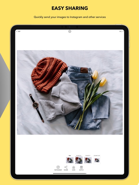 PicTapGo+ is the simple, fun and fast photo editor for iPhone and iPad. Users can crop and rotate photos, apply photo filters, retouch selfies, improve lighting and share to Facebook, Instagram and their IG stories. Create and save your own filter recipes and use our Batch Edit option to quickly edit a group of photos for Poshmark, Ebay or a digital scrapbook. PicTapGo+ lets you stack and combine filters and adjust filter strength to create your own custom style.