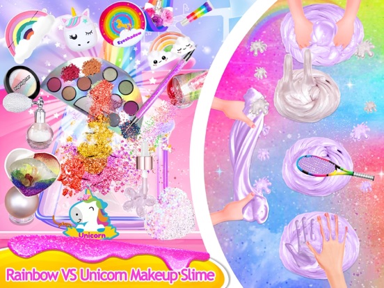 Makeup slime is now so popular all over the world. Have you tried the rainbow & fluffy glitter makeup slime? With our latest app “Makeup Slime”, you can try so many kinds of makeups, add all the makeups into the clear slime to make the makeup slime and play with the fluffy makeup slime. Let’s get started.