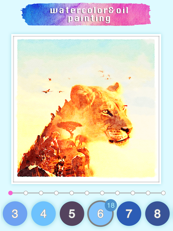Watercolor & Oil painting is a color-by-number game designed to help you relax.Your new favorite anti-stress activity – free color by number game.