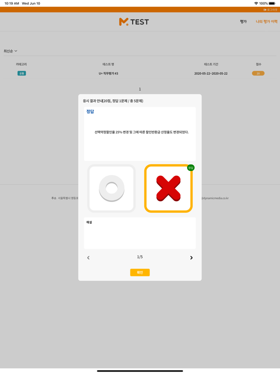 또한 이력조회에서 지난 테스트 결과를 확인할 수 있습니다.