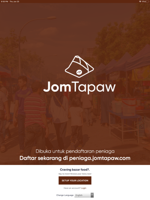 Aplikasi Jual-Beli dan Penghataran Makanan Halal. Gunakan JomTapaw untuk memenuhi keinginan anda. Nikmati suasana membeli juadah secara dalam talian dari perniaga-peniaga juadah disekitar anda. ▶ Daftar Akaun - Daftar akaun untuk membuat pesanan juadah ▶ Buat Pesanan - Pilih dari pelbagai juadah yang sedia untuk penghantaran ▶ Dapat Makan - Juadah sampai di depan pintu untuk anda nikmati