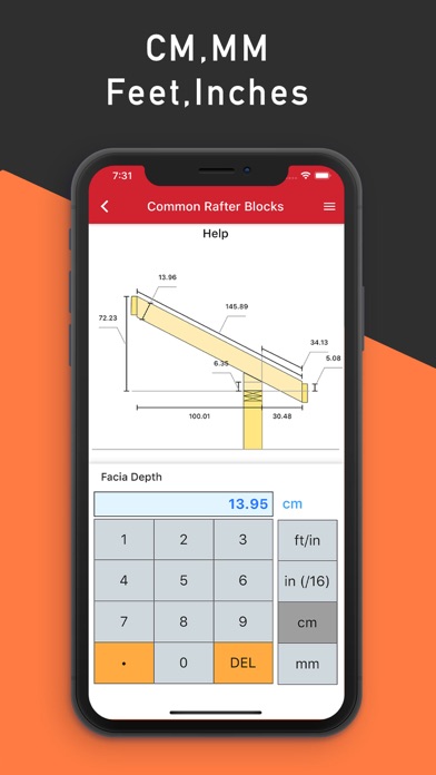 Then the app will automatically generate a to scale view of what the Rafter will look like, along with all of the measurements.