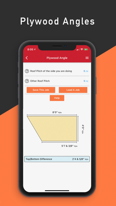 Plywood Angles is super simple to use. You just enter your first roof pitch (example 6/12) and then your other roof pitch.