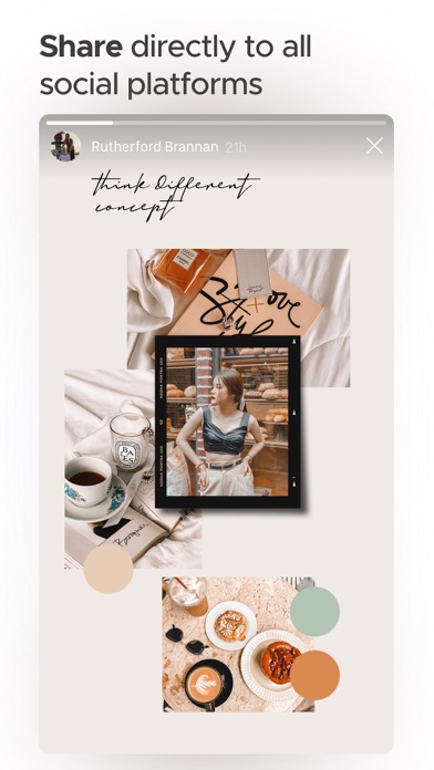 Forget about the times when you had to go through tons of data and images searching for inspiration, everything is ready in one app! Choose preferable canvas size for your favorite social media, add borders to photos, frame them with gorgeous handy tools. Add text with outstanding fonts, combine with stickers and let imagination guide you! You can apply filters, add handcrafted stickers and texts with variety of effects effortlessly. You can choose among ready to use special templates and publish them within seconds just by adding your photos.