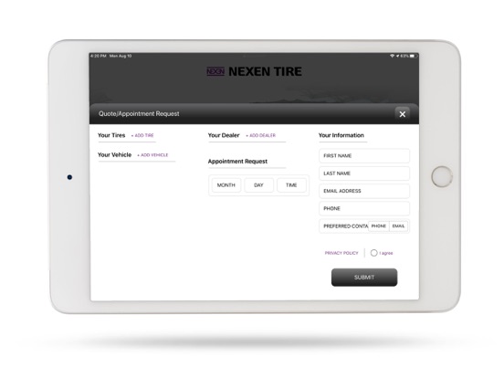 The dealer locator will help you find a local shop for service, and is equipped with a request a quote and appointment feature. Once you have found a tire and local shop, you can submit a quote or appointment request for that dealer, right on the app. Fill out some basic contact information and we’ll take care of the rest. A local dealer will contact you and provide assistance.