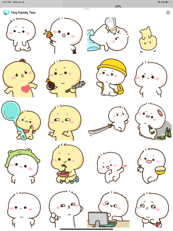● Tiny Family Two is trending now on AppStore! ● Super set of 96 animated stickers of the Tiny Family Two! This pack sticker will light up your iMessage conversation & take it to the next level! Amaze your friends and show how you REALLY feel with this cute sticker pack of 96 unique high quality stickers. This includes 32 free stickers, if you wanna use all, pls purchase.