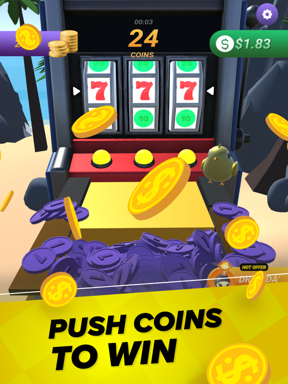 The goal of the game is to collect the coins dropping from a machine. After being dropped, they are being collected on a platform which needs a shake to further drop the coins and make them count into your account. One of the features is a will, by the spin of which you gain extra bonuses. Another feature is an extra shake, or an extra will spin.