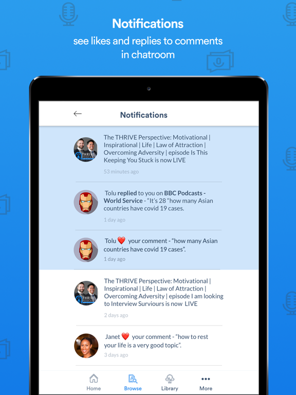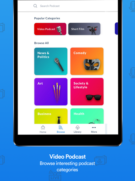 listen to podcasts free from various categories. Discover podcast from different areas and add them to your library to listen and watch anytime. Whether you are into comedy podcast or news podcast or stories podcast or art, health, lifestyle, travel etc. - you can podcast series on almost everything. You will also get recommendations based on your choices and also see the trending podcasts.