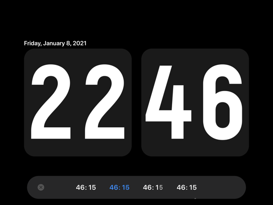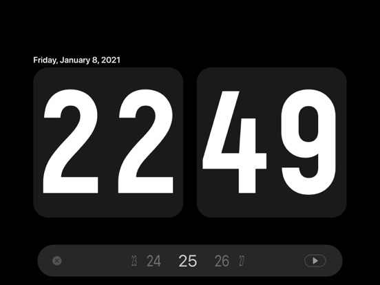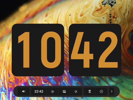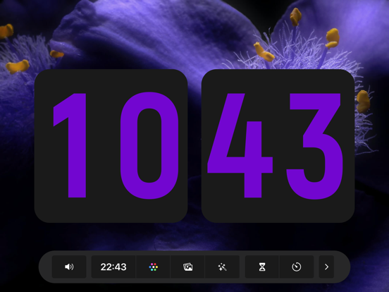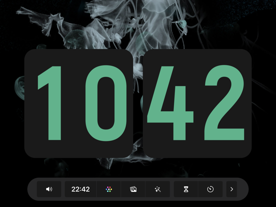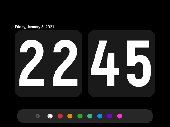 Digital clock with page turning. 1, 8 colors 2. Beautiful font 3. The role of screensavers 4. The effect of turning pages 5. Show date/hide date 6, 12 hours/24 hours 7. Display second hand/hide second hand 8. Turn on the sound/mute 9. Support iPad and iPhone 10. Support landscape and portrait