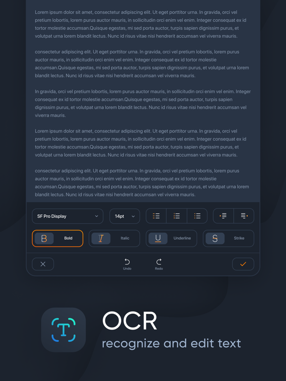 Scan a lot of pages quickly or add pages to existing documents. Further you can edit, sign, share it or store important docs on your device.