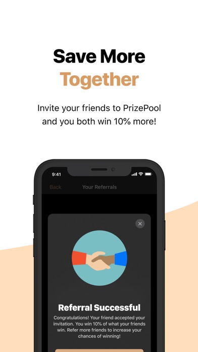 - Boost your winnings with referrals! Receive a bonus of 10% of any prize won by a friend you refer to PrizePool, and they receive a 10% boost on their winnings just for using your referral code at signup. Referrals never expire, bonuses are paid for as long as you're both using PrizePool.