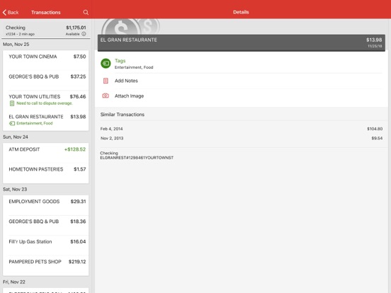 Keep your transactions organized by allowing you to add tags, notes and photos of receipts and checks.