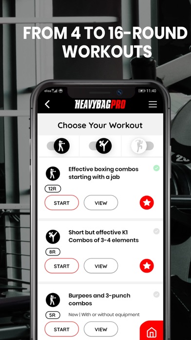 The app is suitable for enthusiasts of any combat sport who have already learned the basics and want to continue to advance their skills. Workouts are categorized into boxing, kickboxing, Muay Thai, and K1. They are also suitable for practitioners of MMA, Jiu-Jitsu, Karate, Taekwondo or any other types of martial arts.