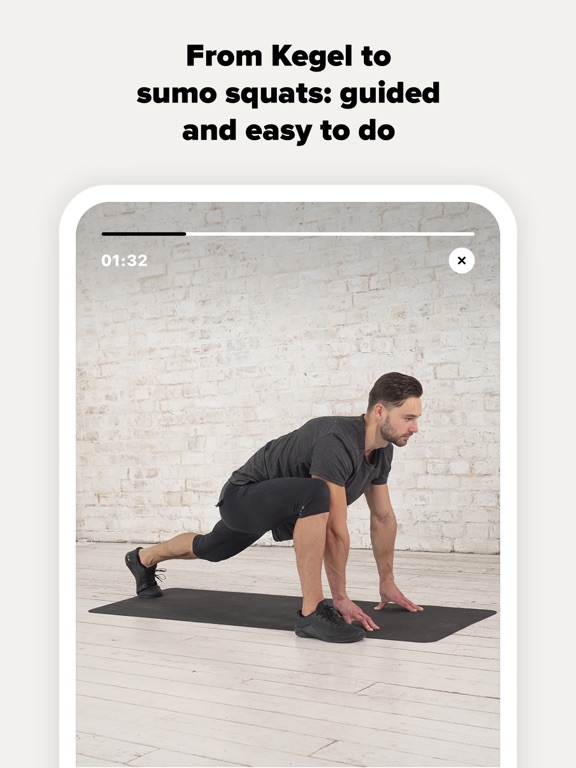 Every day you have a quick to-do: from Kegel exercises to Sumo Squats. All is guided and less than 5 mins a day.